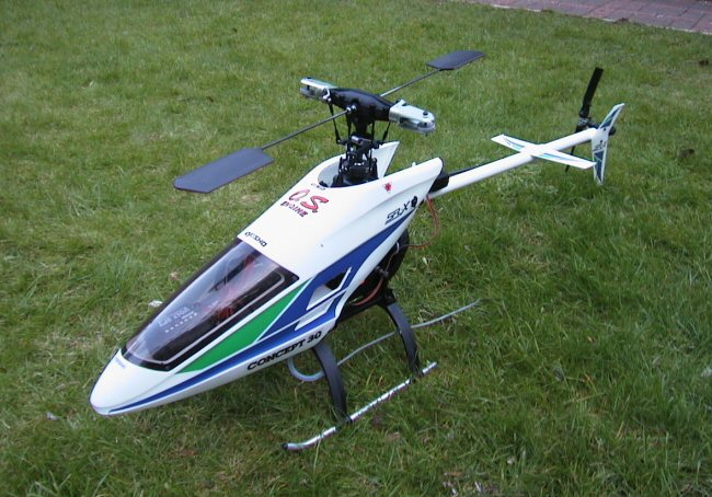 Kyosho Concept 30SR-X This model is fitted with the following components:- • OS32 SX-H • ICG540 gyro with a JR8700g tail servo • All other servos are JR591 servo's • Main blades are NHP Razor Pro 515mm • Tail Blades are NHP Blades • Exhaust is a Zimmermann muffler • Fuel is Formula Irvine 10% at the moment • Plug is a Fire Power F5 Ugrades Fitted:- Metal blade grips (Kyosho), NHP tail pushrod and a NHP carbon tube drive. |